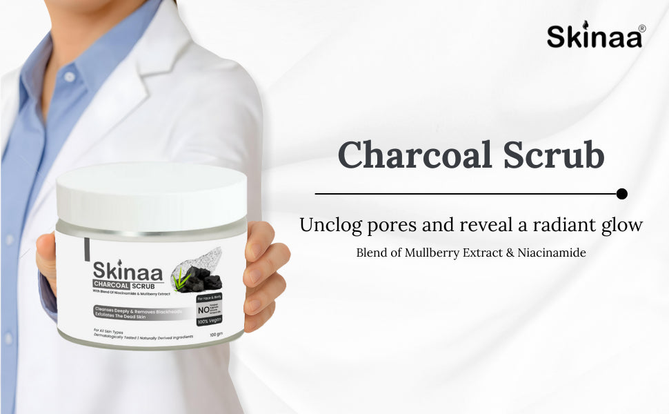 Skinaa Charcoal Scrub for glowing skin – Restores natural radiance.