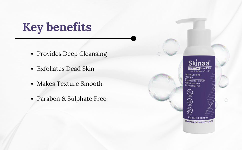 • Skinaa Everyday Shampoo for hair regrowth, volume, and nourishment – Multi-benefit daily care.