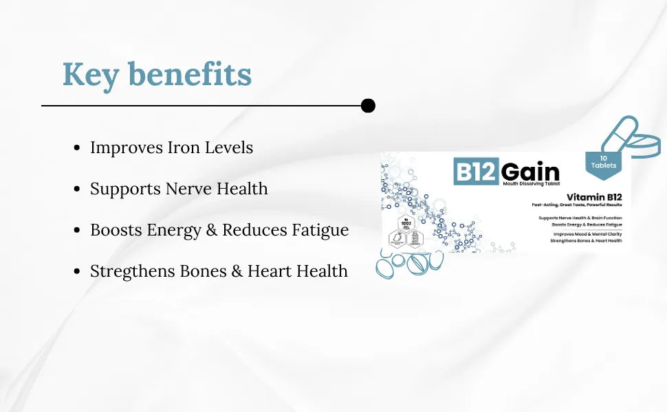 This advanced blend helps improve red blood cell formation, enhances mood, and strengthens bones and heart health. Designed for better absorption, B12 Gain is ideal for those experiencing fatigue, weakness, or vitamin deficiency.
