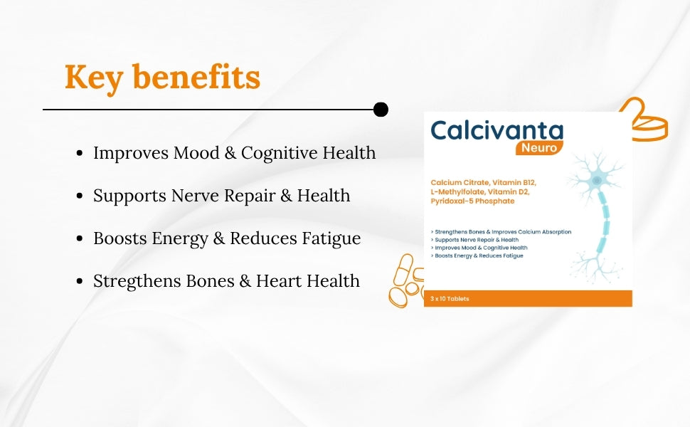 Cancivanta Neuro Tablets are designed to support brain and nerve health. Enriched with essential neuro-vitamins, they help improve memory, focus, and concentration while reducing fatigue and enhancing overall vitality.