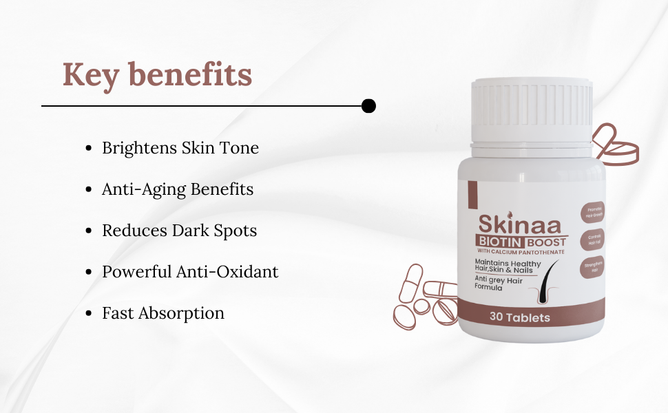 Skinaa Biotin Boost Tablets – Daily Supplement for Healthy Hair, Skin & Nails