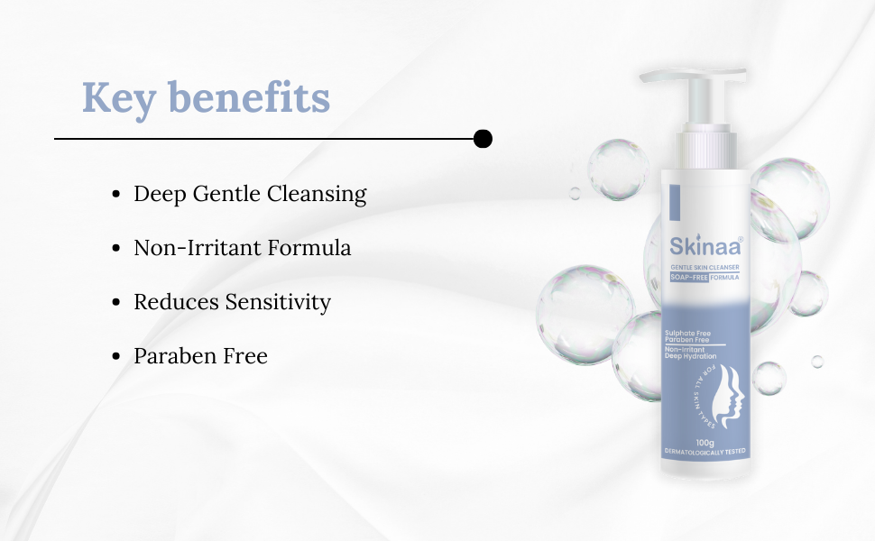 Skinaa Soap-Free Cleanser – Mild cleansing without harsh surfactants.