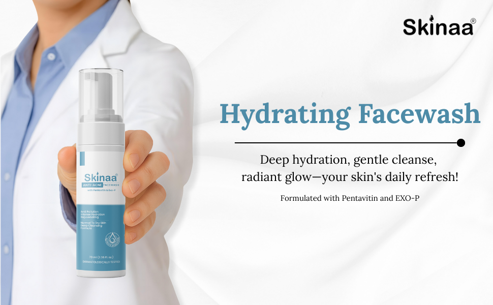 If your skin often feels tight, dry, or dull after cleansing, it’s time to switch to a gentle, nourishing formula. Skinaa Hydrating Facewash is a dermatologist-tested cleanser made with advanced actives like Pentavitin and Exo-P to deeply hydrate while protecting your skin against everyday pollution and damage.
