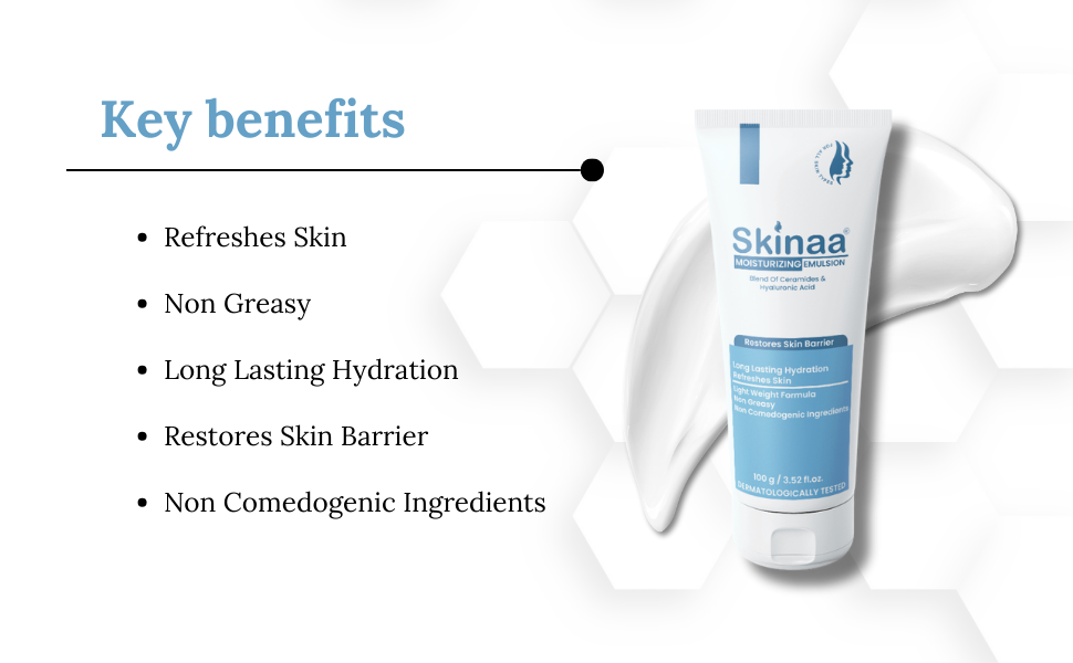 Dermatologically formulated and tested for regular use, Skinaa Moisturizing Emulsion works well as part of both morning and evening skincare routines. It layers easily under sunscreen or makeup and is suitable for those seeking lightweight hydration with barrier support.